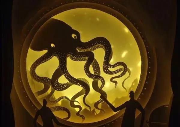 那么這些燈飾到底是如何做出來的呢?其實原理非常簡單,就是利用近光的物體比較明亮,遠(yuǎn)光的物體比較暗淡的原理,把事先雕刻好的KT板,按照一定的順利排列擺放,只需要打開燈飾后面的LED燈,一盞層次分明、如夢幻童話般的燈飾就做好了。