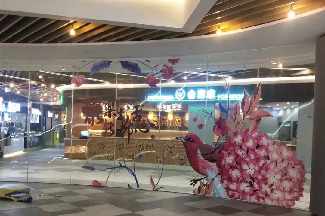以前的玻璃一般是貼一條防撞磨砂貼,帶提醒文字或公司名和鏤空的logo,少部分會(huì)選擇有畫面的單透或者背膠。沒畫面單調(diào),畫面大會(huì)影響透光;玻璃貼兼顧了畫面和透光度,進(jìn)一步發(fā)揮了畫面的表現(xiàn)力,讓玻璃起到了裝飾及宣傳引流的作用。