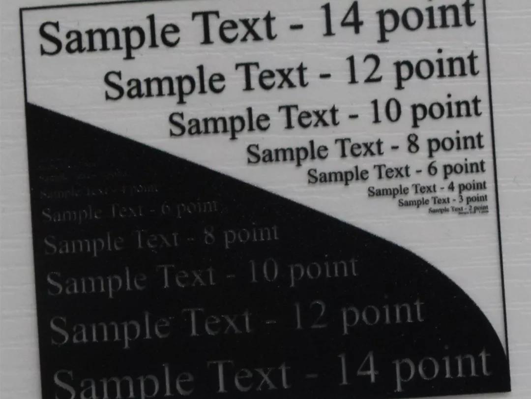 彩瑞 GT1804U打印精度非常高,打印畫面平滑無顆粒感,3磅的小字清晰銳利。