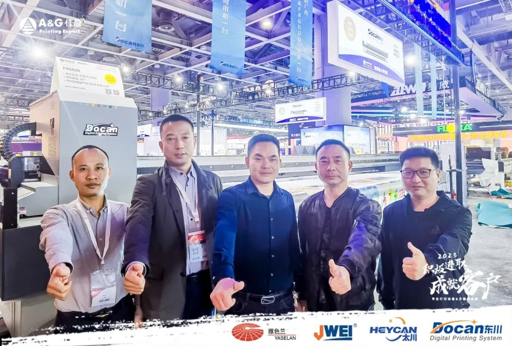 “創(chuàng)造良好協(xié)商環(huán)境,開展真誠優(yōu)質(zhì)服務(wù)”,佳盈后勤團(tuán)隊(duì)始終奔走在第一線!同時(shí),佳盈市場部則開通了線上直播渠道,為暫時(shí)無法到場的客戶帶來了別樣的觀展體驗(yàn),突破線下溝通的局限性,努力為客戶打造更有價(jià)值的打印方案。展會(huì)期間,佳盈展位的洽談區(qū)域座無虛席,其中更是不乏來自外省、大灣區(qū)各地客戶的身影,在此再次向所有客戶表達(dá)衷心的感謝!而在眾多合作案例中,東川6米6超寬幅UV導(dǎo)帶機(jī)作為王牌產(chǎn)品,經(jīng)過將近兩年的市場檢驗(yàn),在速度和品質(zhì)方面均表現(xiàn)優(yōu)異,成為了眾多客戶在本次展會(huì)中高度關(guān)注的機(jī)型。東成噴繪集團(tuán)(南寧潤成廣告公司)的兩位老板,更是在現(xiàn)場觀看完6.6米導(dǎo)帶機(jī)的卓越表現(xiàn)后,當(dāng)即決定把該設(shè)備收入囊中,為日后大幅提高企業(yè)產(chǎn)能、增強(qiáng)企業(yè)競爭力助力。