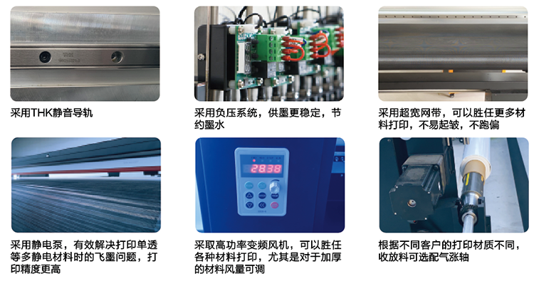 采取高功率變頻風(fēng)機(jī),可以勝任各種材料打印,尤其是對于加厚的材料風(fēng)量可調(diào)